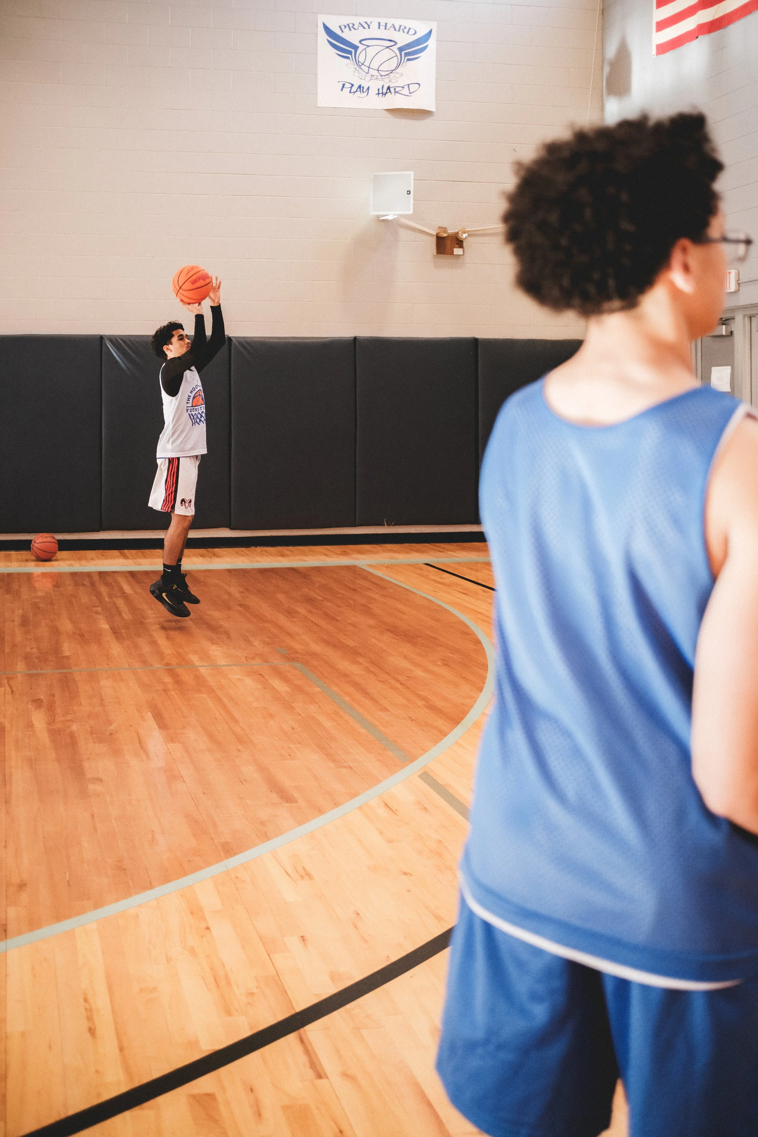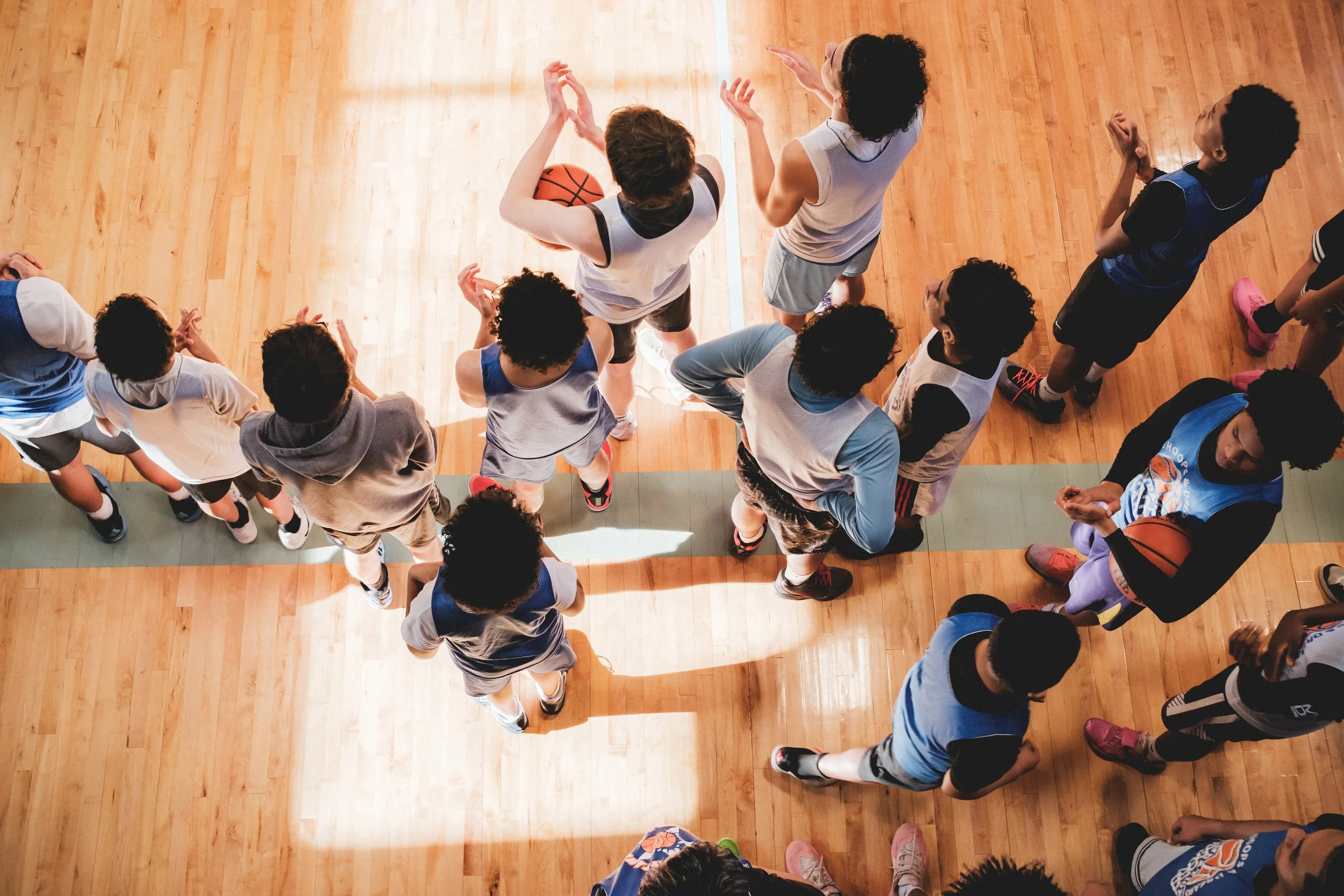 My reason for being at this training session was to work with a small group of art students, alongside the program leader. As I spoke with the art students I quickly realized how the fundamentals of basketball overlap with the concept of documentary photography. The primary overlapping concept is to be methodical about when to take the shot, specifically learning to process the dynamics of moment to understand when the moment is right for the big move.
